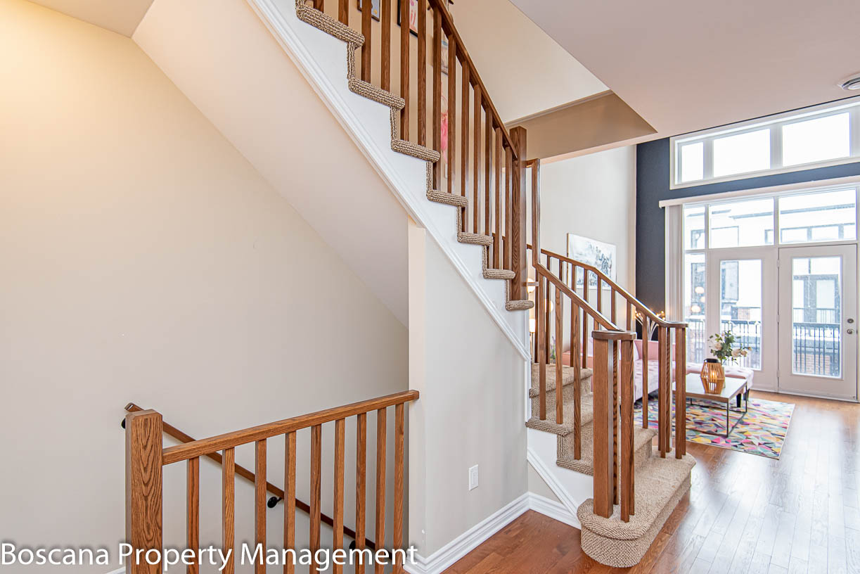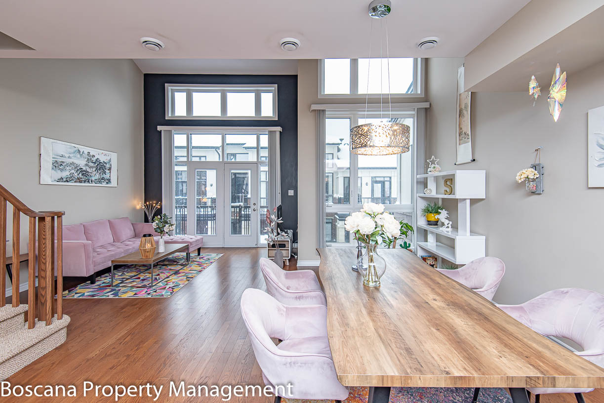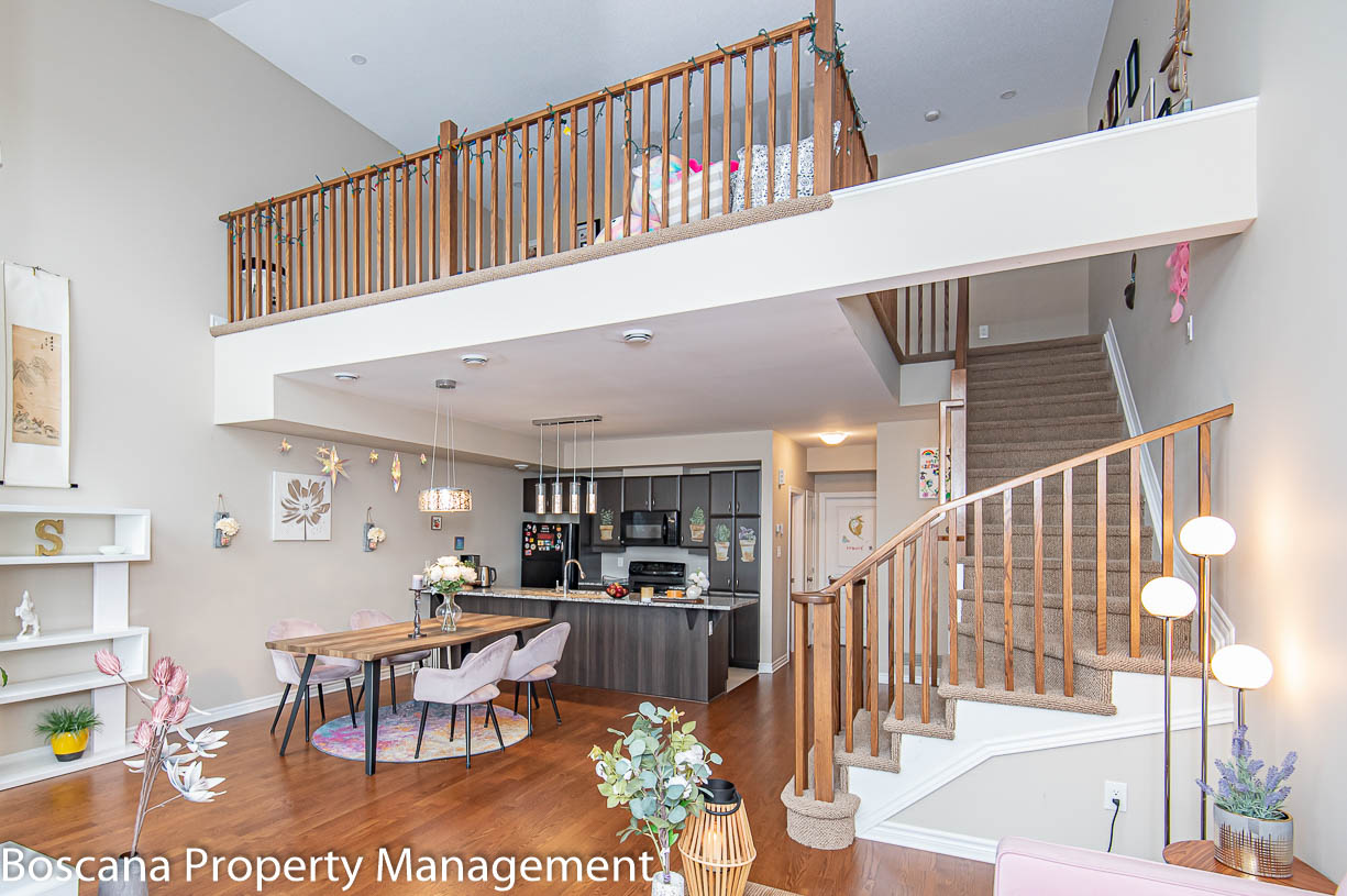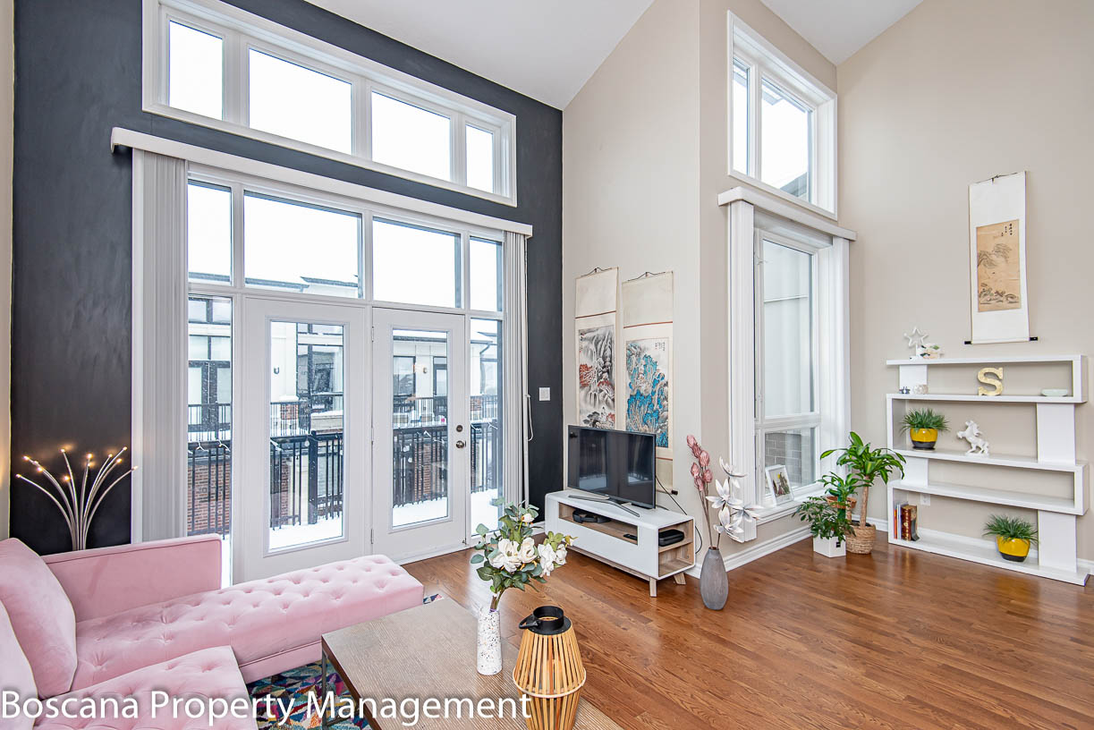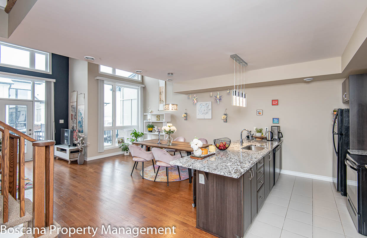 Bright and spacious 2 bedrooms, 2 baths townhouse/condo for rent in Riverside South! A newly Urbandale-built community, set close to pristine forests, ravines, nature trails, and waterfront parks! Light floods through the windows, which span two stories to a cathedral ceiling and a large loft separated by a maple railing.